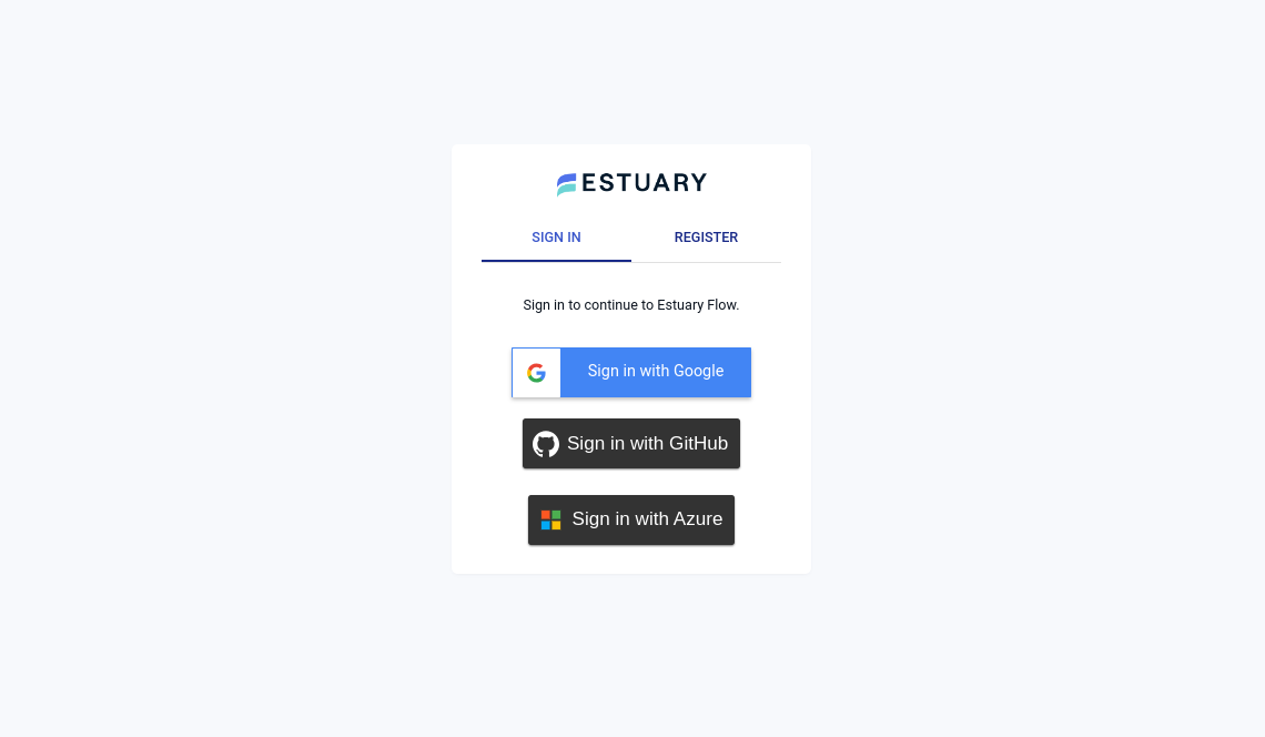 If you've never used Flow before, you'll be prompted to register before being issued a trial account. If you want to use Flow for production workflows or collaborate with team members, you'll need an organizational account. Contact Estuary to create a new organizational account or join an existing organization.