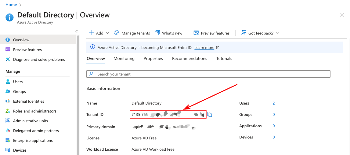 Your Azure AD tenant ID. You can find this in the Azure Active Directory page.