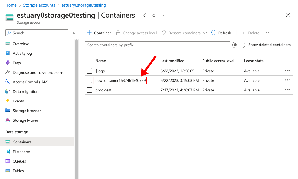 If your bucket is for Azure, send support@estuary.dev an email with the name of the storage bucket and any other information you gathered per the steps above. Let us know whether you want to use this storage bucket to for your whole Flow account, or just a specific prefix. We'll be in touch when it's done!