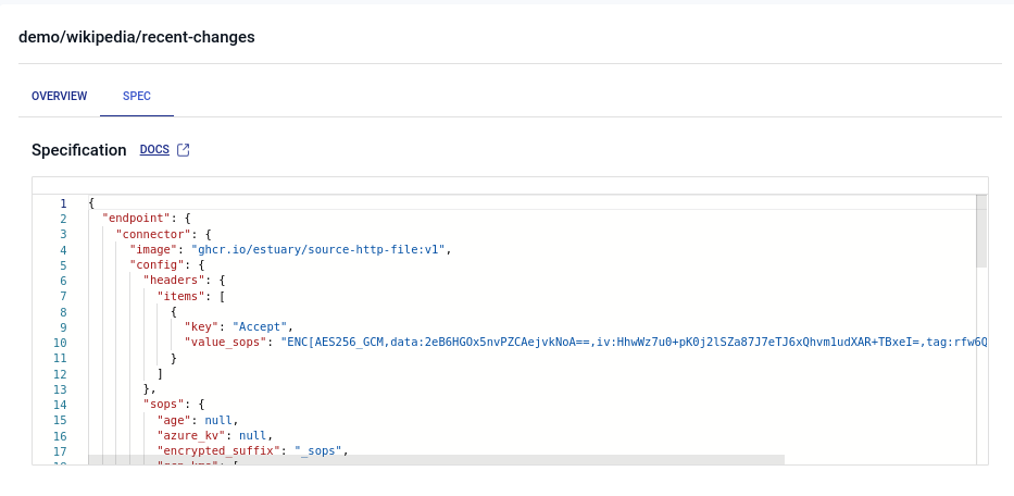 When you click Edit specification for a materialization, you're taken to the Edit Materialization page.